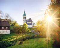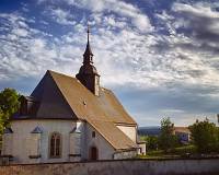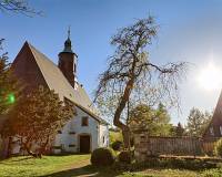 Im 14. Jh. stand an der Stelle der jetzigen Kirche einer Kapelle. Um 1500 wurde diese zur Dorfkirche erweitert, die seit 1606 in der heutigen Form besteht.