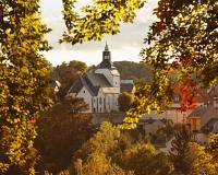 Die Stadtkirche „St. Marien und Laurentin“, eine spätgotische Hallenkirche, die 1596-1602 nach einem Stadtbrand wiederaufgebaut und mit kunstreicher Sandstein-Bildhauerei ausgestattet wurde.