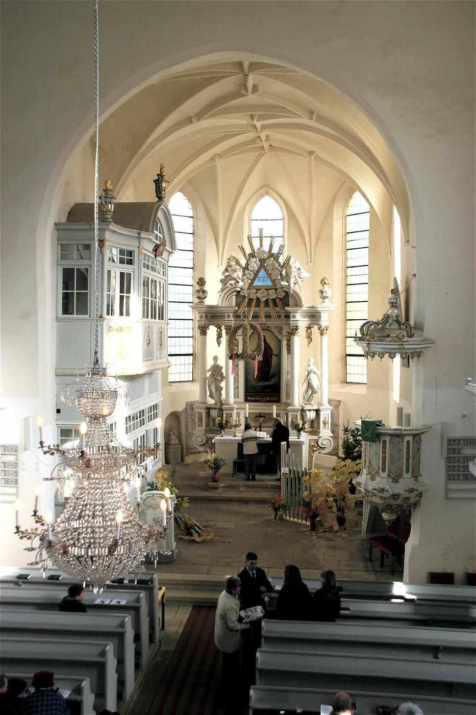 In den Jahren 1622, 1630, 1669 und 1738 wurde die Stadt von heftigen Bränden heimgesucht so auch die Kirche. Nach nur zwei Jahren Bauzeit konnte die Kirche 1740 wieder genutzt werden. Große Unterstützung erhielt die Gemeinde vom damaligen Schloßherrn Gottlieb Christian von Holzendorf.