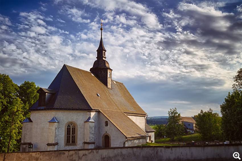Um 1500 wurde diese zur Dorfkirche erweitert, die seit 1606 in der heutigen Form besteht.
