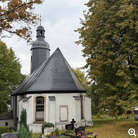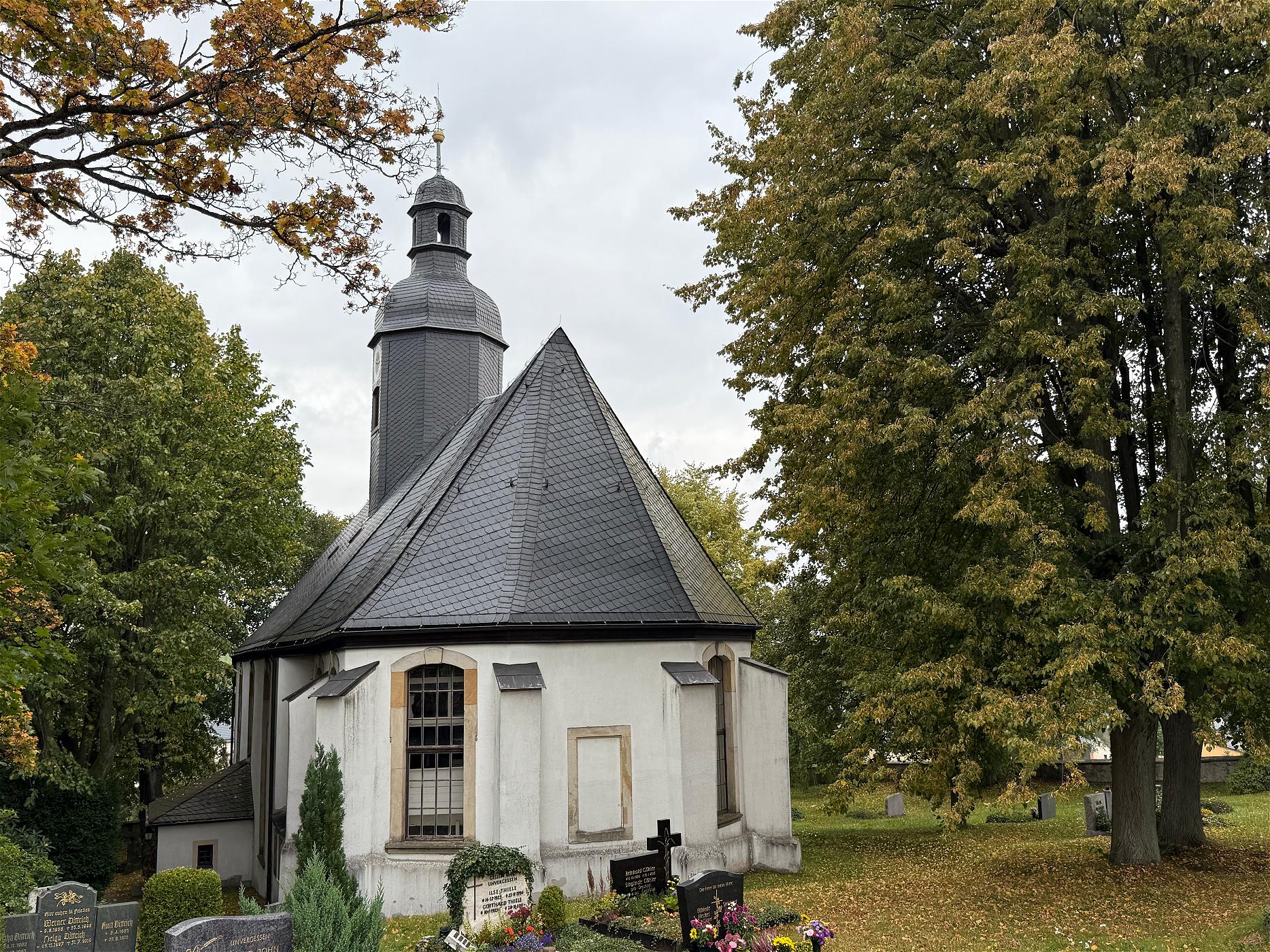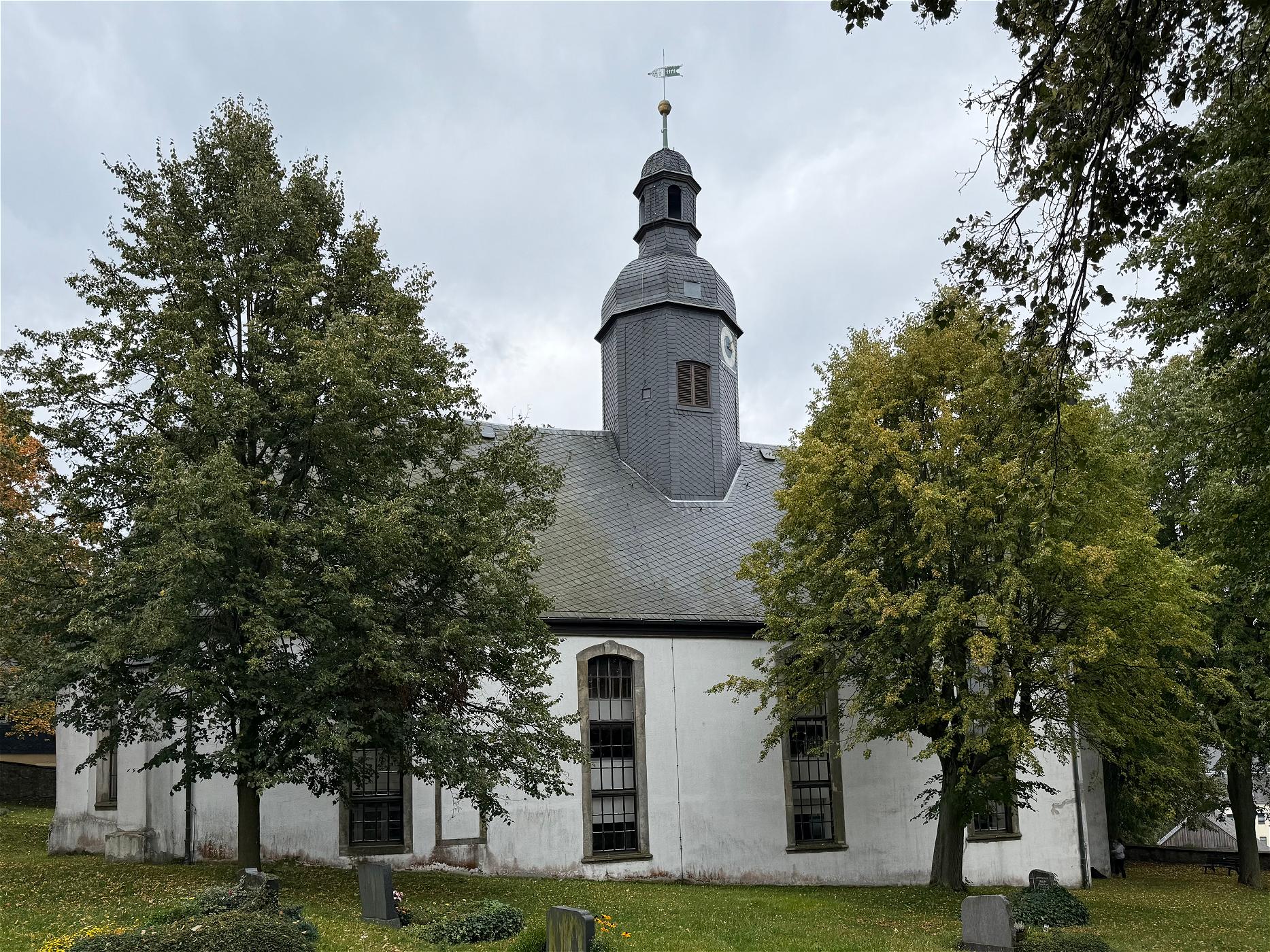 Die Lage der Dorfkirche ist als reizvoll zu bezeichnen, obschon die Kirche von Durchreisenden nicht unmittelbar entdeckt wird. Sie ist von der Friedhofmauer und altem Baumbestand des Friedhofs gegenüber dem Pfarrhof mit "Jugendgarten" am Hang über der Dorfstraße umgeben.